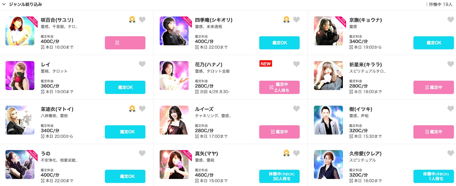 | 鑑定料金 | 280C/分 | ||