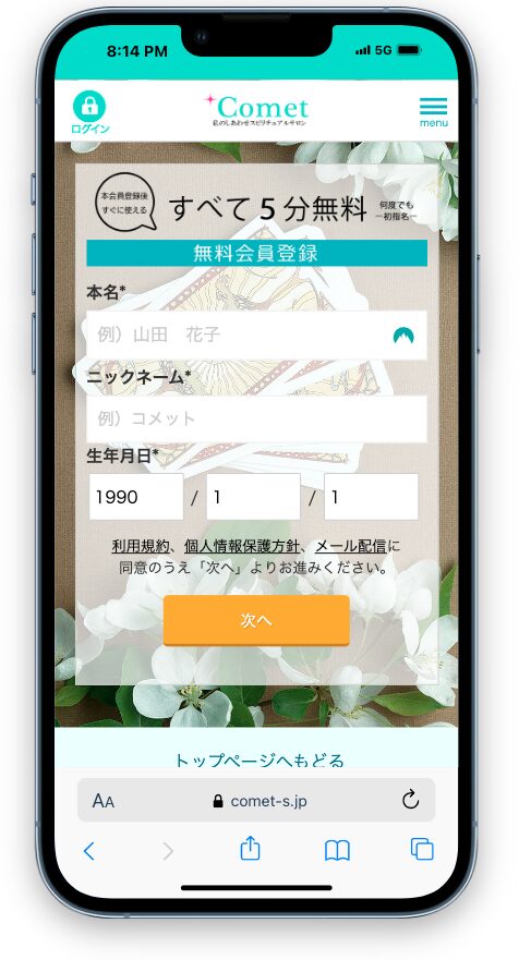 電話占いコメットの大きなメリットのひとつが、初めての方でも安心して始められるサポート体制です。初回利用者向けには「初回無料特典」も用意されているため、料金を気にせず自分に合う先生をじっくり試すことができます。
